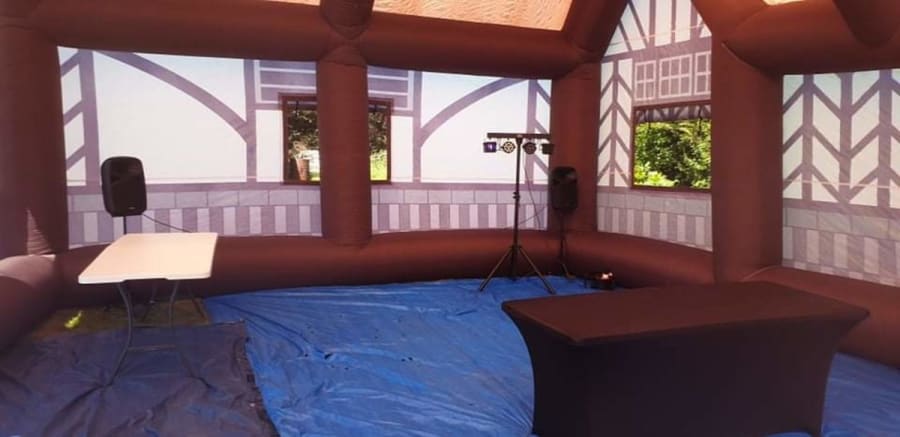 Our Inflatable Pub is the ideal solution to Outdoor Socialising. This is becoming extremely popular in the current climate with larger groups available in outdoor areas. The Inflatable Bar is 26ft long (8 meters) and 18ft wide (6 meters) so plenty of space is required.