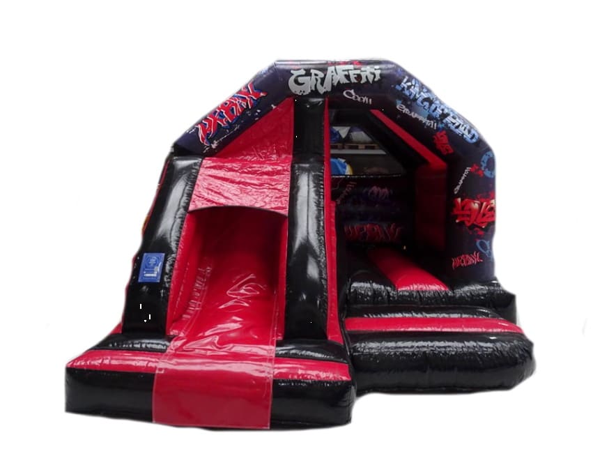 Our 12ft x 15ft Graffiti Slide Bouncy Castle Combo is a medium size castles in our range.
