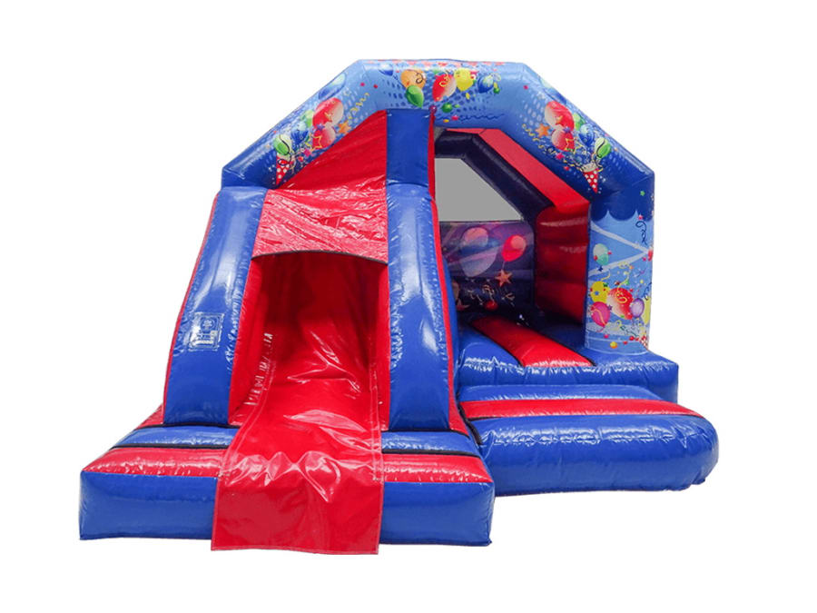 Our 12ft x 15ft Celebration Slide Bouncy Castle Combo is a medium size castles in our range.