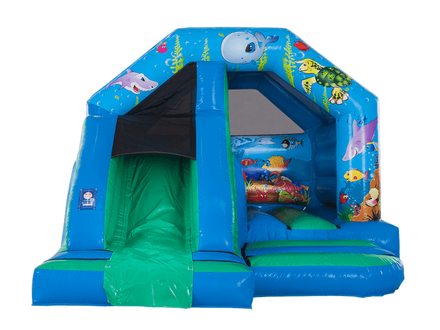 Our 12ft x 15ft Ocean Slide Bouncy Castle Combo is a medium size castles in our range.